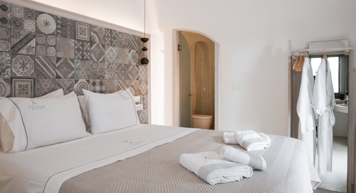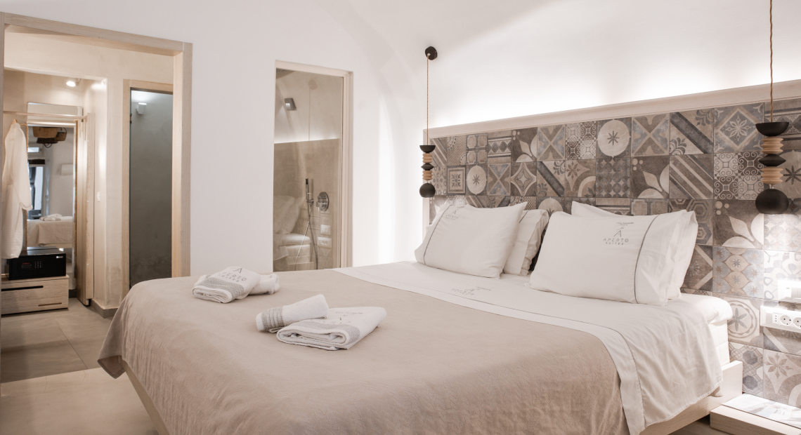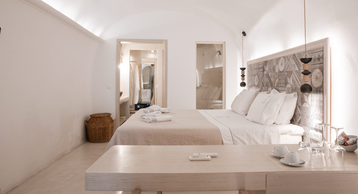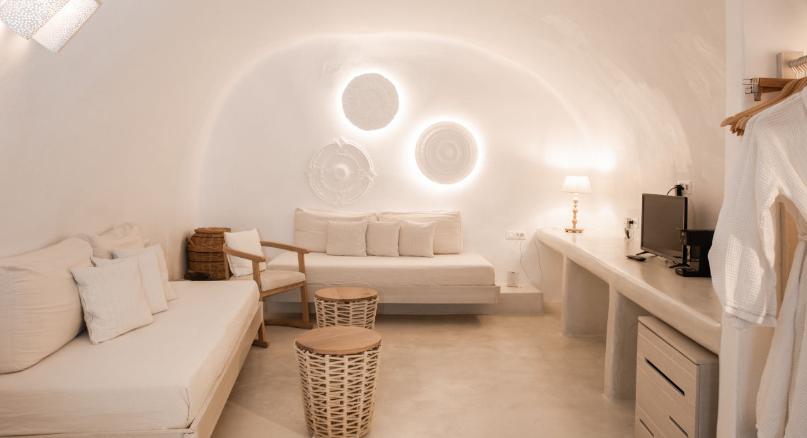 Carefully curated amenities, refined materials, and private outdoor areas — often complemented by indoor or outdoor jacuzzis — create an atmosphere of understated luxury, where the beauty of Santorini becomes part of the living experience.