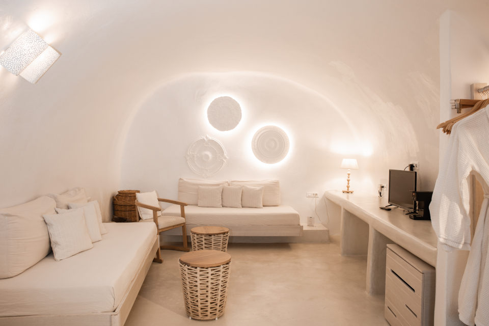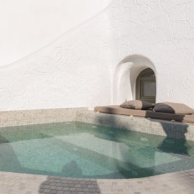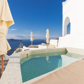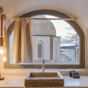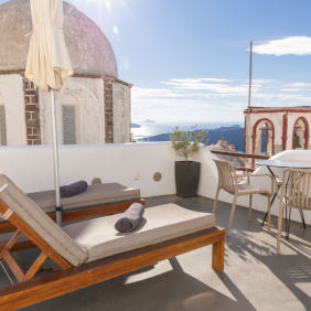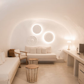 Built in 2017 this totally fresh and new suite is ideal for couple with an outdoor infinity jacuzzi, traditional but still luxurious design and of course with amazing views to the volcano, the sunset and the whole caldera.